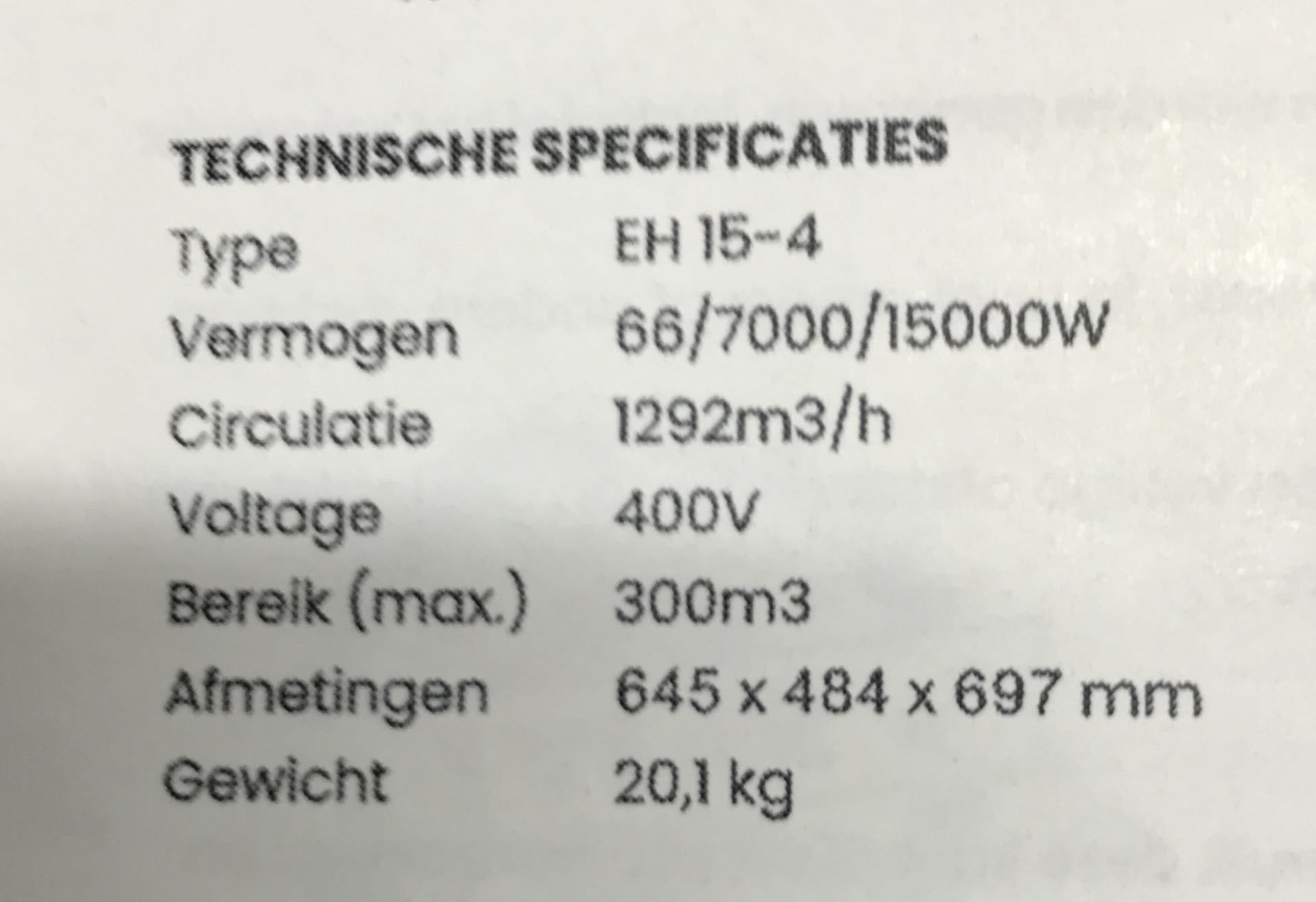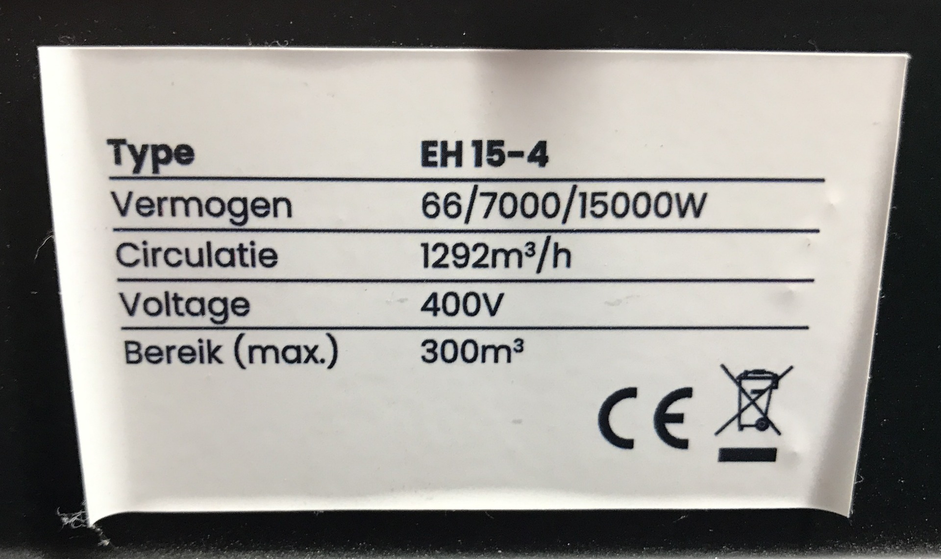 -Vermogen: 66 / 7000 / 15000 Watt.