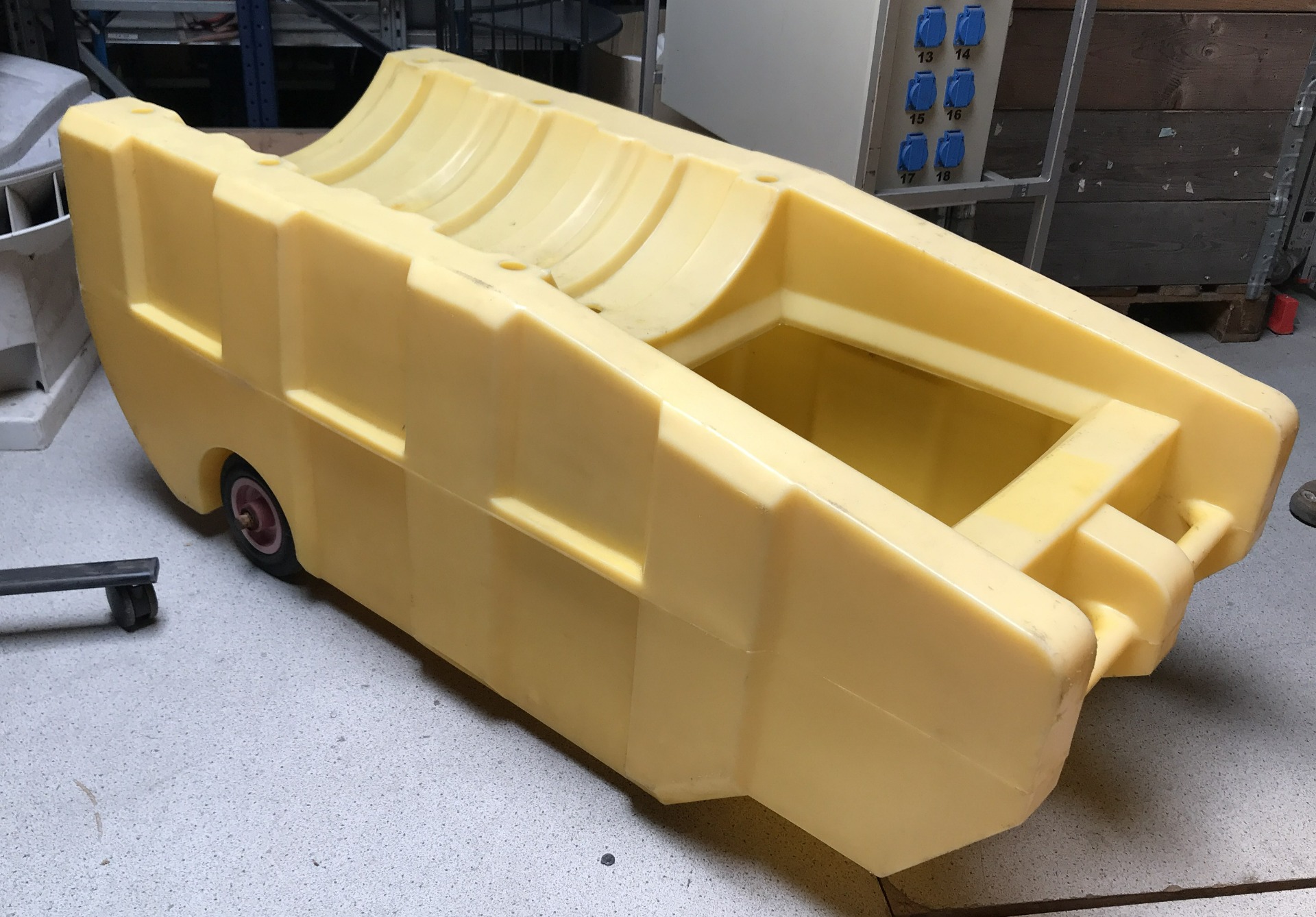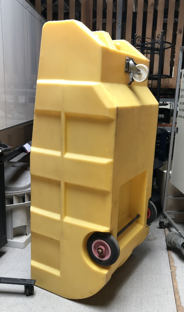 Slagvast 100 % • UV-bestendig polyethyleen • Onderhoudsvrij • Roestvrij • Past door 90cm deuren • Gemakkelijk te kantelen en te verrijden door de grote wielen.