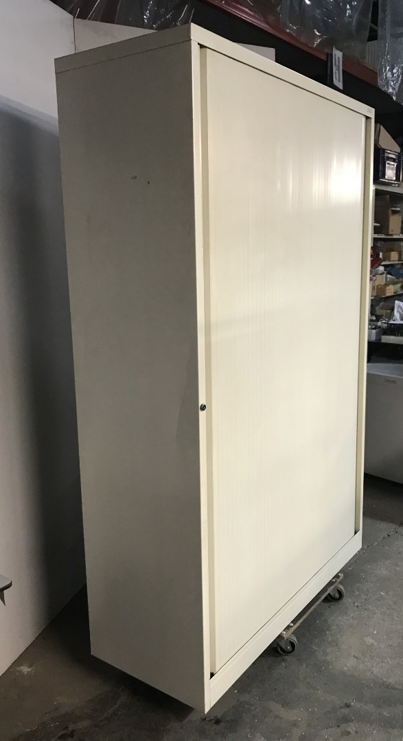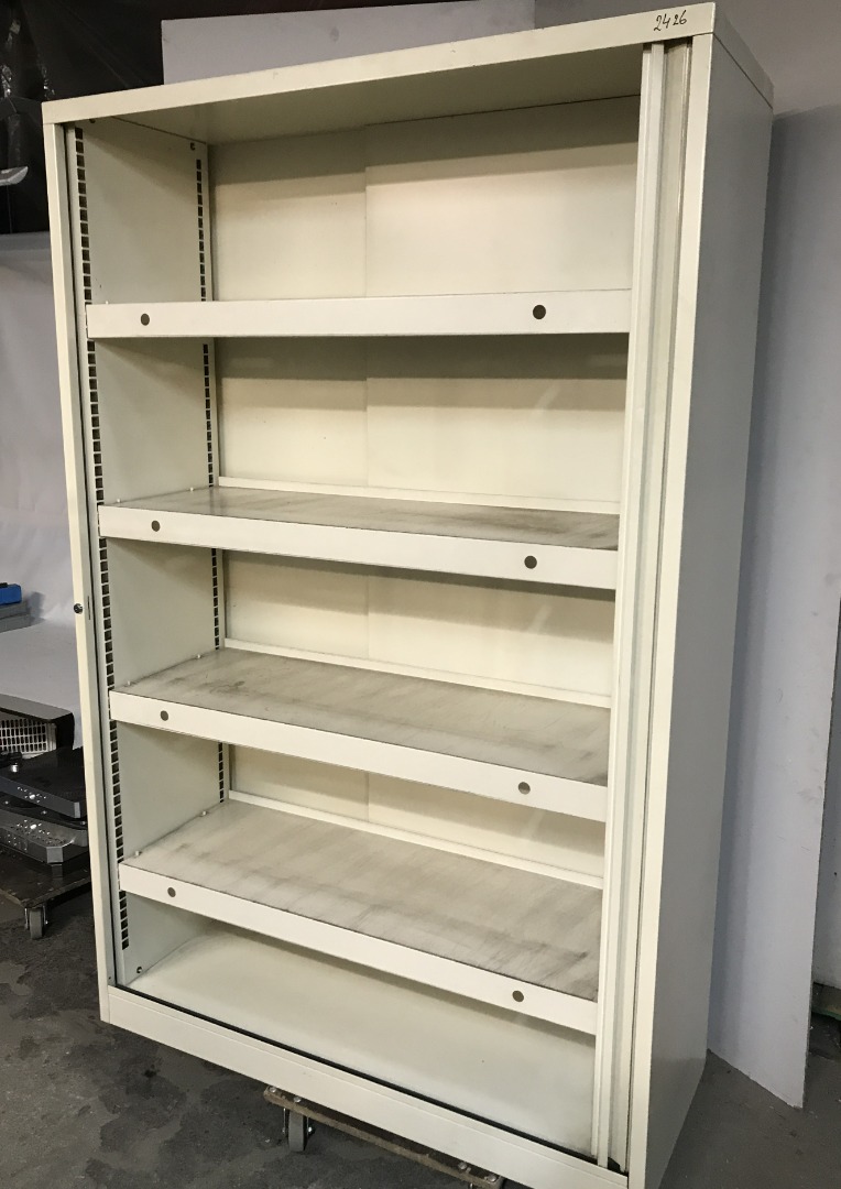 Gebruikte metalen roldeurkast.