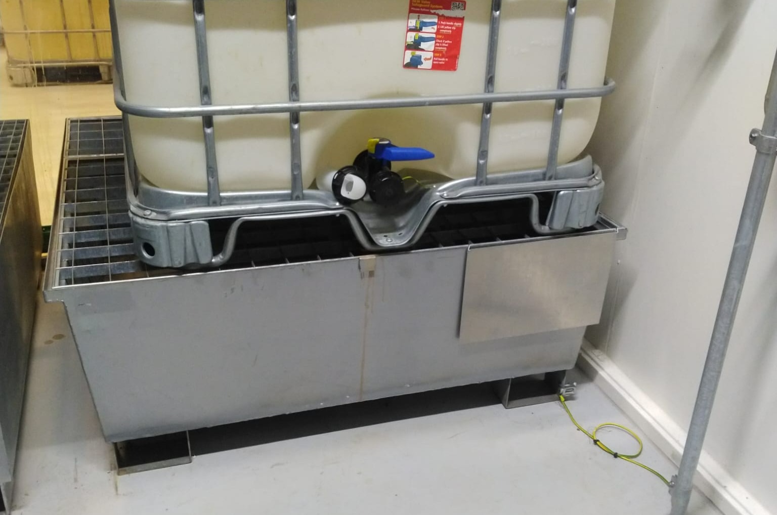 ZGAN lekbak. -Afm: ca 1220b x 1220l x 490h mm. -Inwendige maat: ca 1200b x 1200l x 370h mm. -Inhoud: ca 530 liter. -IBC geschikt. -Materiaal: staal verzinkt.