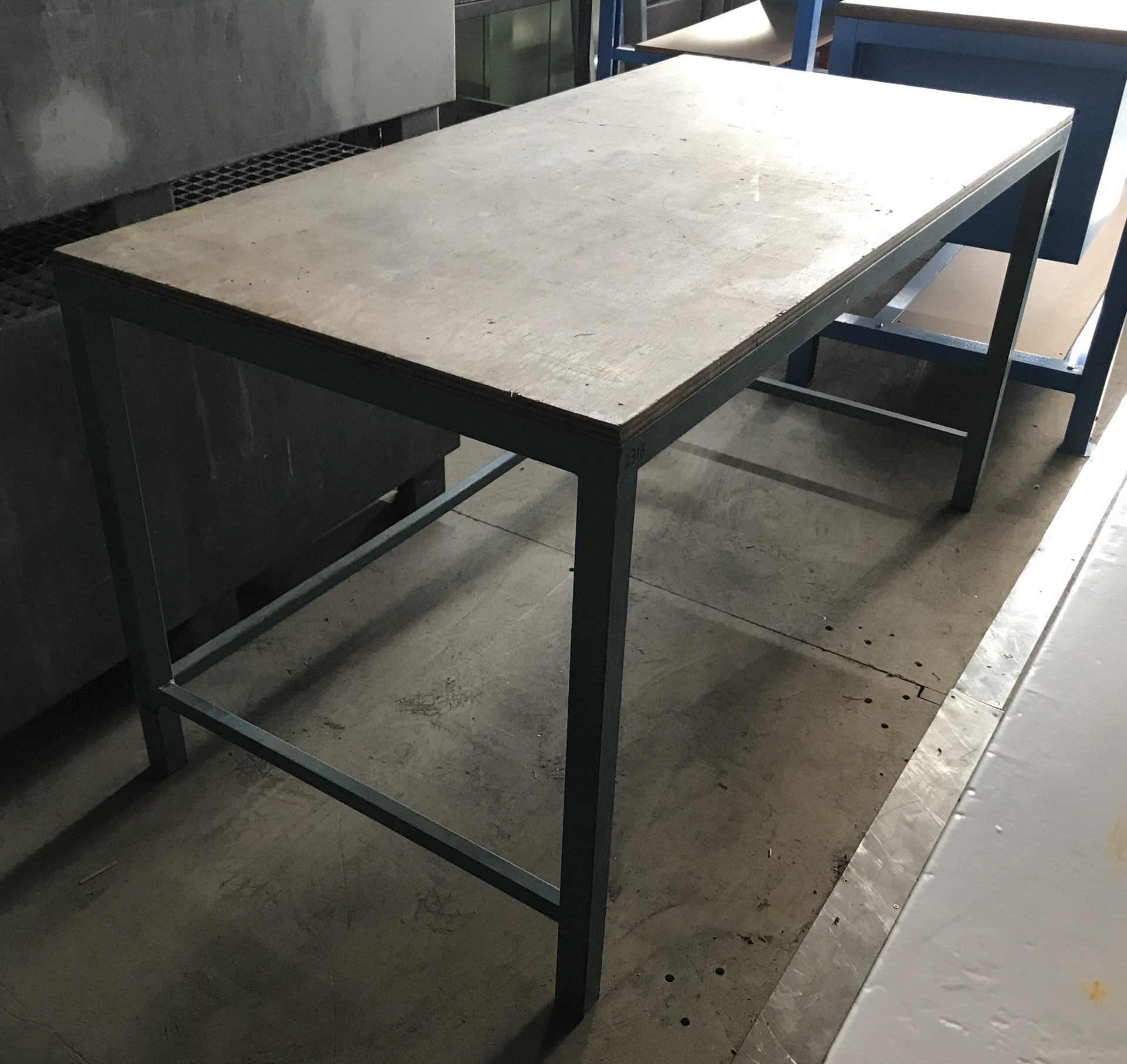 Werkbank,150x75x78 cm, stalen frame, multiplex blad